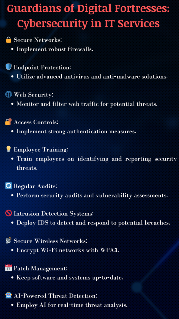 In conclusion, enhancing cybersecurity in IT services is a multifaceted endeavor that requires a holistic approach. By prioritizing threat detection, incident response, endpoint protection, encryption, network security, data privacy, cyber hygiene, and vulnerability management, organizations can create a robust defense against the ever-evolving landscape of cyber threats. As technology advances, so too must our cybersecurity practices, ensuring a secure and resilient IT infrastructure for businesses to thrive in the digital age.