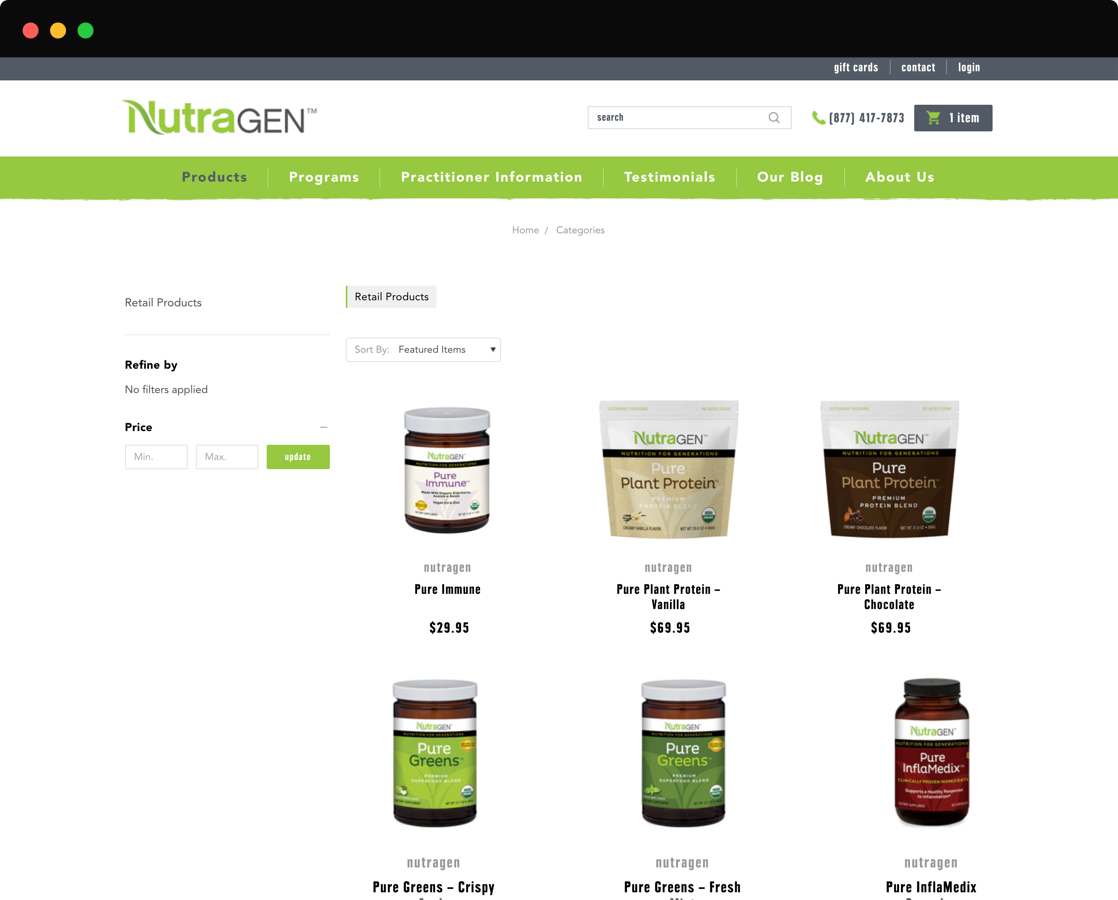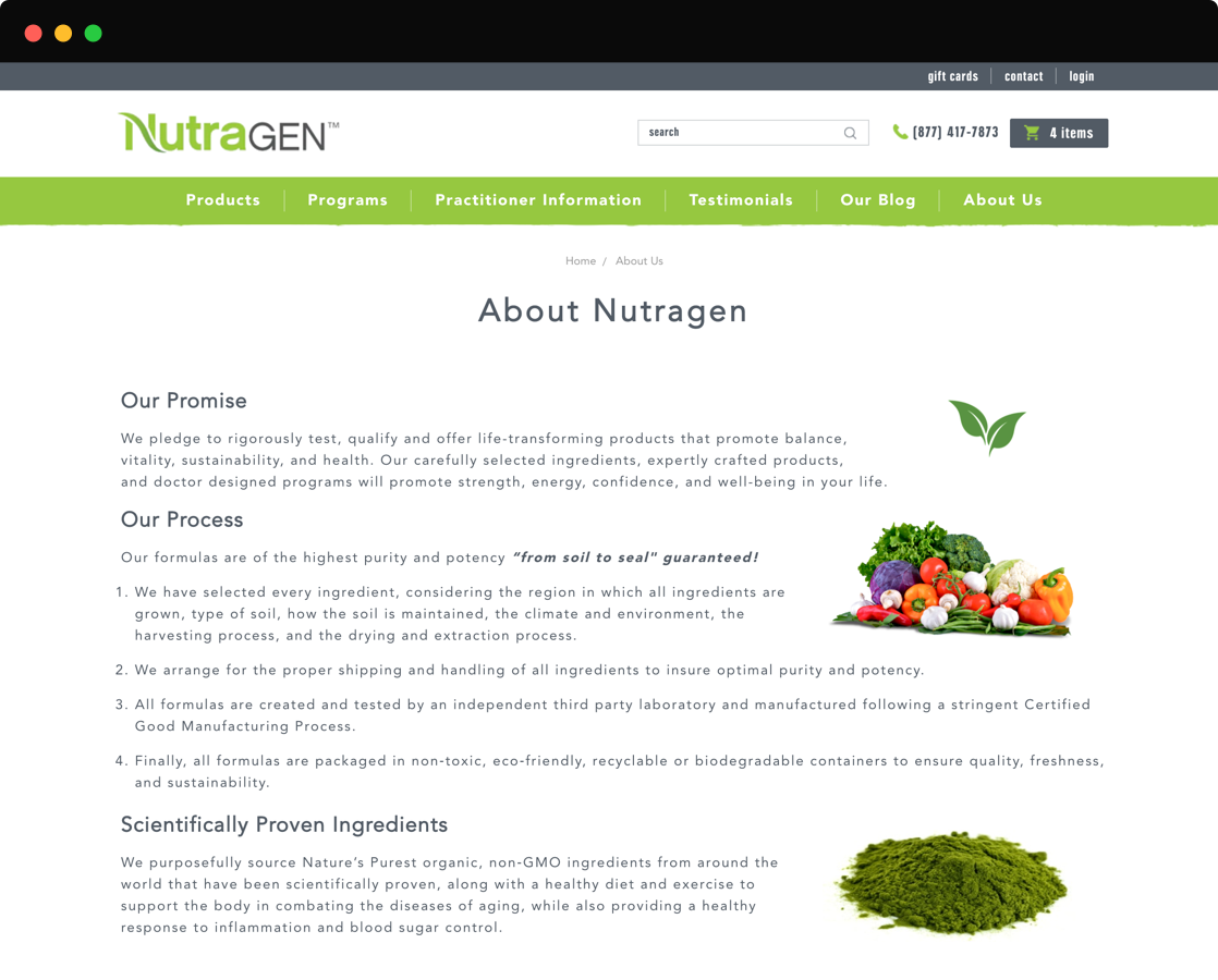 'NutraGEN' is a gen-next eCommerce website that offers organic whole food nutrition products to promote balance, stamina, and individual well-being. The clients are located in San Diego. They are formulating and manufacturing the cleanest USDA Certified products along with cleansing programs that help rid your body of environmental toxins while incorporating a new sustainable lifestyle.